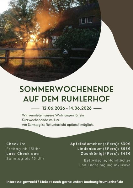Ihr habt es euch so gewünscht und daher bieten wir es wieder an: es gibt Kurzurlaube bei uns. Wir bieten sie an gezielten Wochenenden an und freuen uns schon sehr, euch bei uns begrüßen zu dürfen.